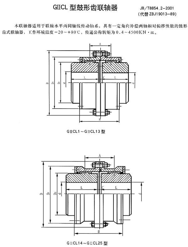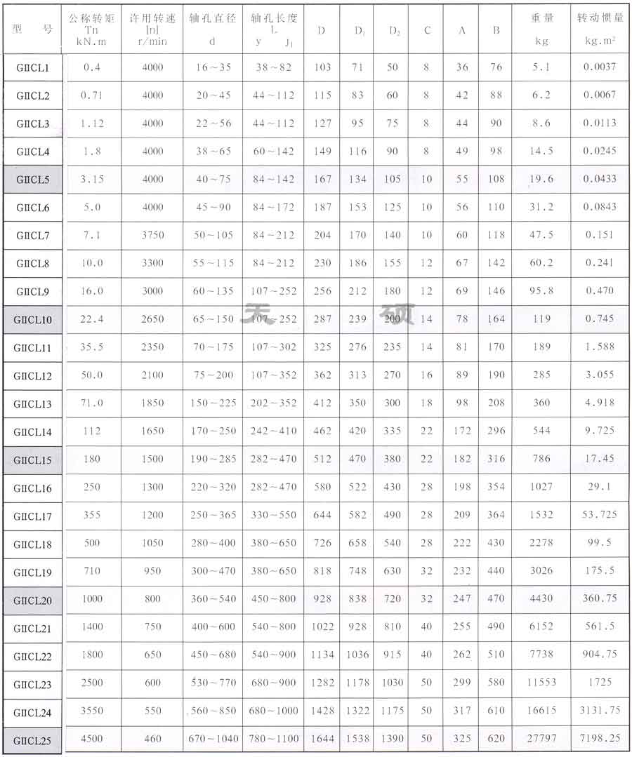 4. 鼓形齒聯(lián)軸器軸孔型式采用Y、Z1和J1組合,滿足多種軸孔連接需要。 鼓形齒聯(lián)軸器產(chǎn)品包括GICL、GⅡCL,GICLZ,GⅡCLZ和NGCL五種型式鼓形齒聯(lián)軸器
