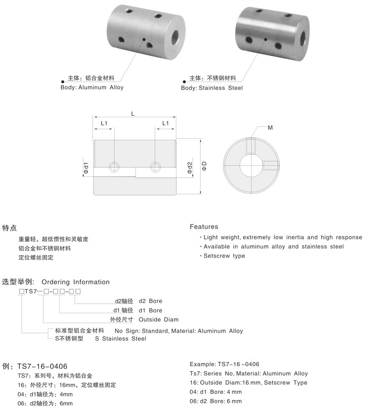 3. 剛性聯(lián)軸器鋁合金和不銹鋼材料