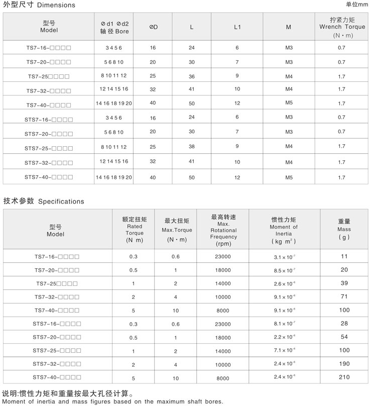 5. 剛性聯(lián)軸器兩端不同孔徑大小的產(chǎn)品型號也備有庫存