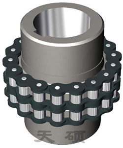 ●特點:鏈條聯(lián)軸器具有結(jié)構(gòu)簡單(四個件組成)、裝拆方便、拆卸時不用移動被聯(lián)接的兩軸、尺寸緊湊、質(zhì)量輕、有一定補償能力、對安裝精度要求不高、工作可靠、壽命較長、成本較低等優(yōu)點。滾子鏈聯(lián)軸器 可用于紡織、農(nóng)機、起重運輸、工程、礦山、輕工、化工等機械的軸系傳動,適用于高溫、潮濕和多塵工況環(huán)境,不適用高速、有劇烈沖擊載荷和傳遞軸向力的場合,鏈條聯(lián)軸器應(yīng)在良好的潤滑并有防護罩的條件下工作。鏈條聯(lián)軸器是利用公用的鏈條,同時與兩個齒數(shù)相同的并列鏈輪嚙合,不同結(jié)構(gòu)型式的鏈條聯(lián)軸器主要區(qū)別是采用不同的鏈條,常見的有雙排滾子鏈聯(lián)軸器、單排滾子鏈聯(lián)軸器、齒形鏈聯(lián)軸器、尼龍鏈聯(lián)軸器等。雙排滾子鏈聯(lián)軸器性能優(yōu)于其他結(jié)構(gòu)型式的聯(lián)軸器,為國內(nèi)外廣泛采用KC系列鏈輪聯(lián)軸器,我國亦已制訂為國家標準GB6069-2002 。