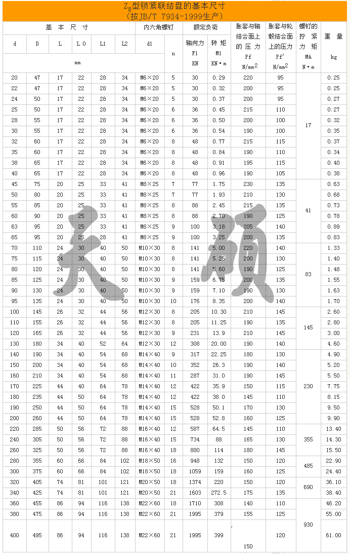 ■Z8型脹緊聯(lián)結(jié)套鎖緊聯(lián)結(jié)盤的基本尺寸 (按JB/T 7934-1999生產(chǎn))