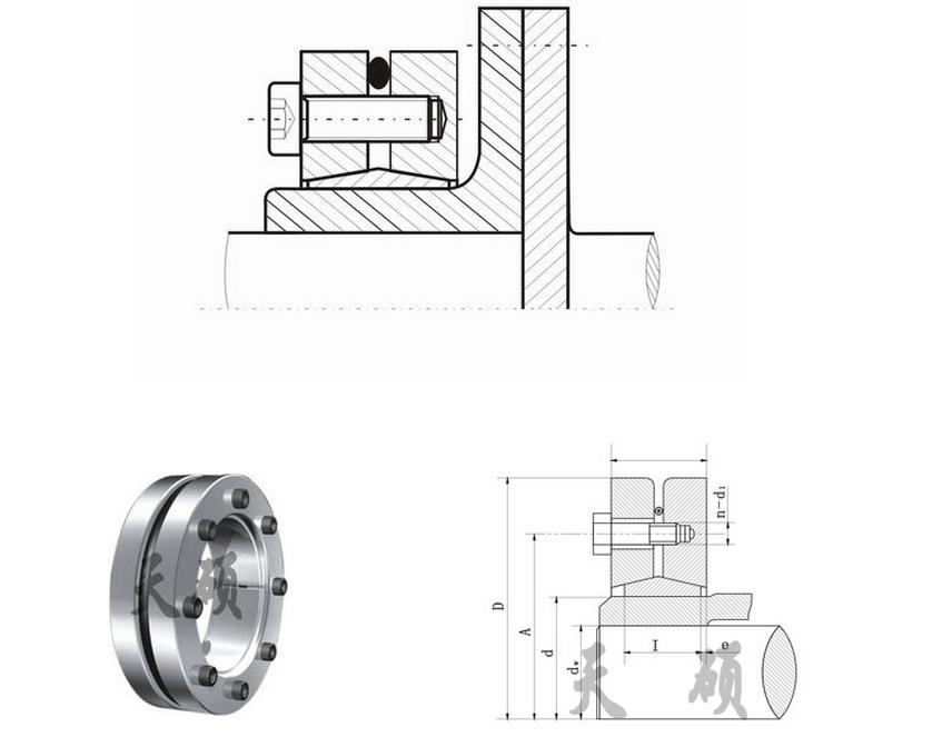 ●Z7型脹套是一種軸與軸套之間的無(wú)鍵聯(lián)結(jié)裝置,此裝置可從外部對(duì)軸套施加夾緊力,使軸與軸套之間形成機(jī)械壓縮配合,而傳遞扭矩,脹套本身不傳遞任何力矩及負(fù)荷.